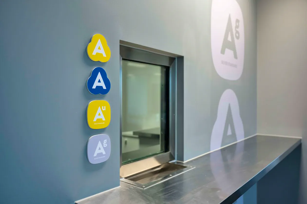 Stainless steel was used extensively for both durability and aesthetic continuity. It ties into the core product – precious metals – while also serving a practical purpose in high-traffic, high-security areas. Light timbers and soft furnishings were introduced in the waiting and consultation zones to create warmth and contrast, ensuring the environment didn’t feel clinical.