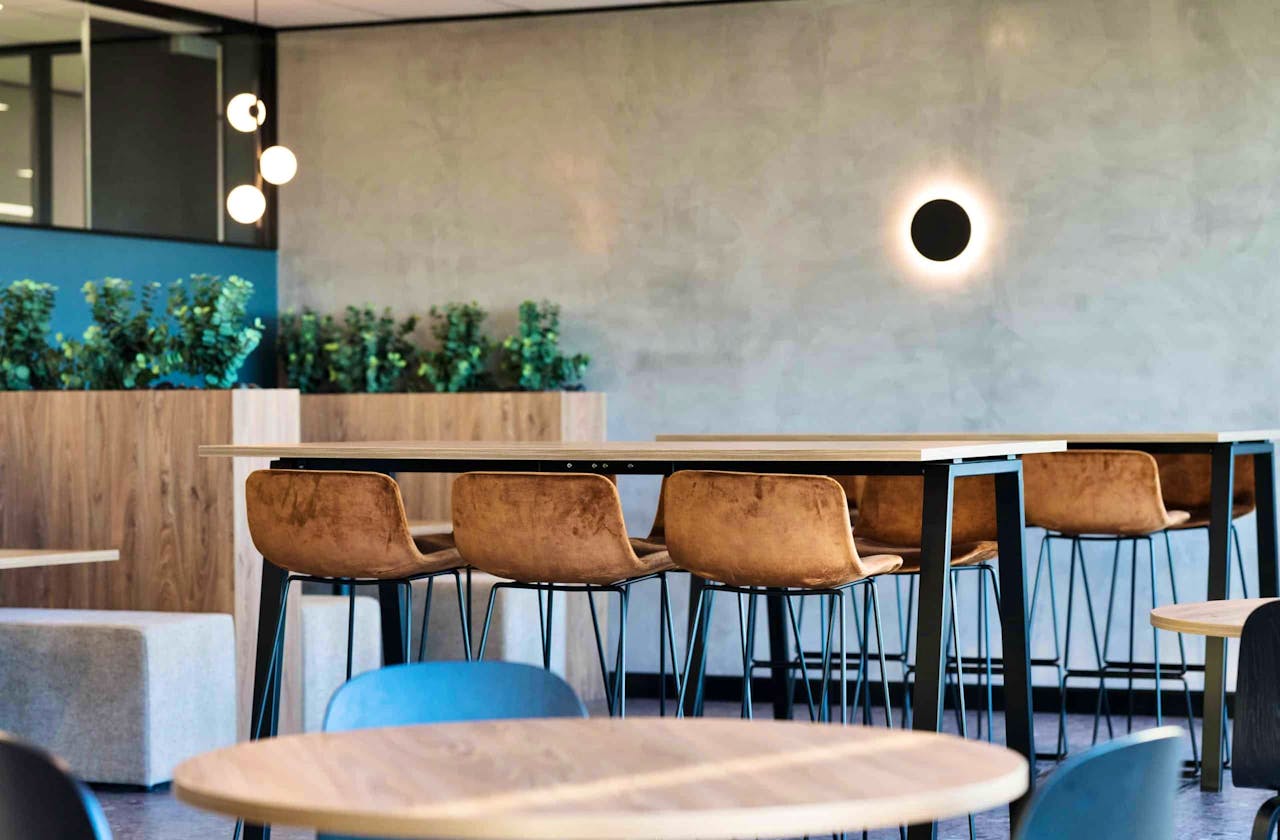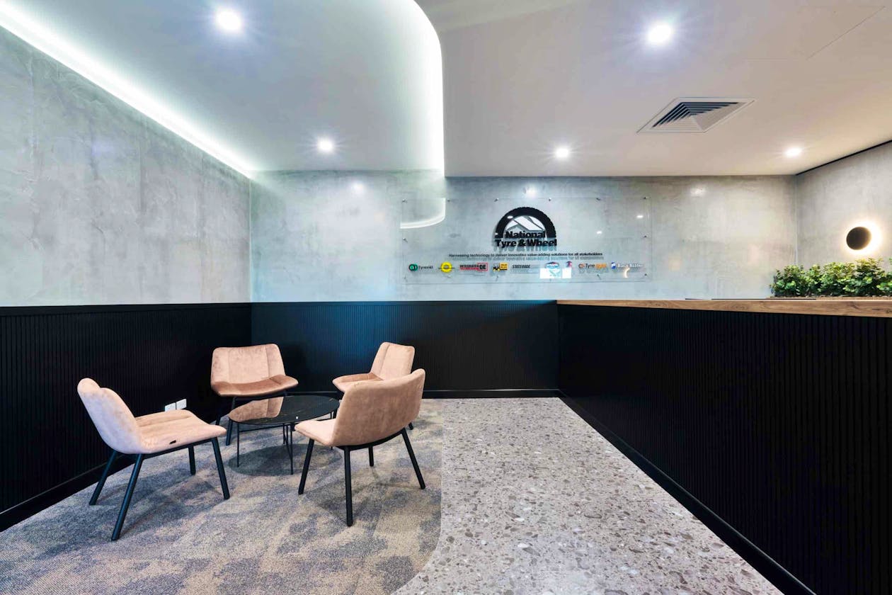 National Tyre & Wheel wanted their two-level office space to have a modern design that wouldn’t date, with use of mainly neutral tones. They also wanted an added pop of colour through upholstery and feature paint.